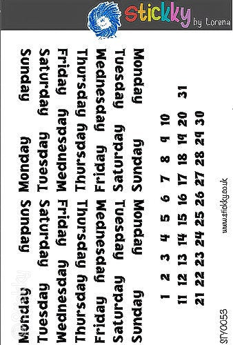 A Full Month of 7 Days of the Week Script and Numbers in B&W Stickers Sheet for Planners and Journals.-